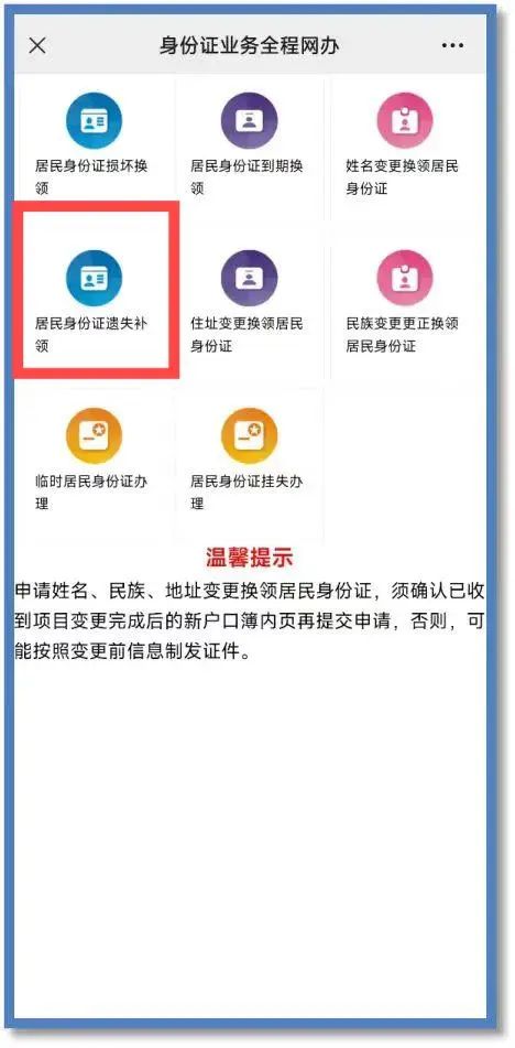 2. "进入“身份证遗失补办”服务": - 在首页或搜索栏中输入“身份证遗失补办”。 - 选择“身份证遗失补办”服务。